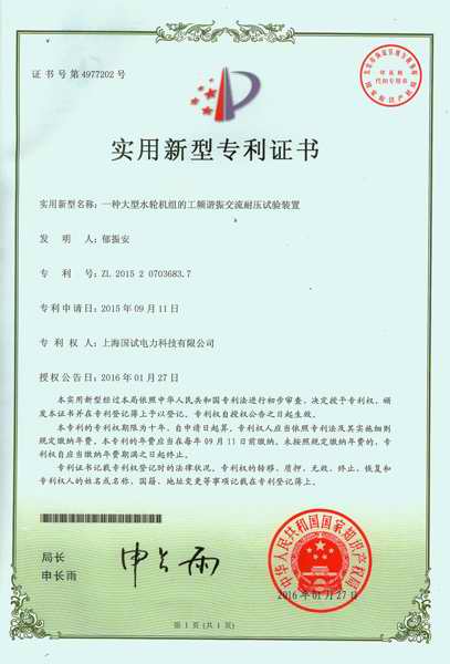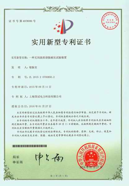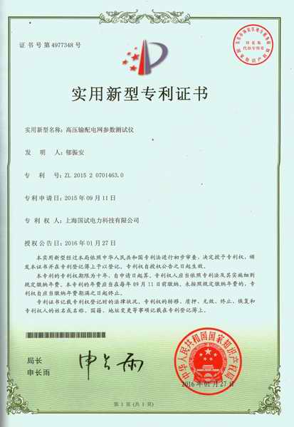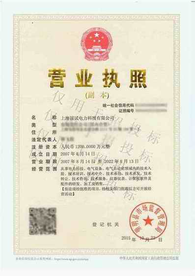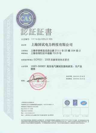 | 持证单位: 上海国试电力科技有限公司 |