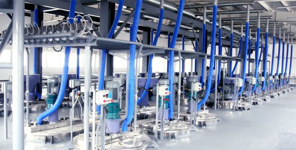 2. 一机双缸“先分散后研磨篮式研磨机”->调漆釜->过滤->全自动/半自动灌装采用专利技术的“先分散后研磨篮式研磨机”,提高了设备利用率、生产效率,减少了物料输送环节,有利于清洗