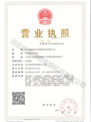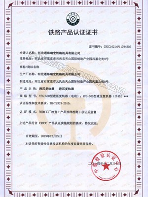 持证单位: 河北通海瑞宏铁路机具有限公司